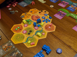 Tom: We talked about Flotilla a little on the podcast, and how we found its party trick, in having an asymmetric ‘two-phase’ structure, to be a little lacking. We also found it a little disappointing that direct competition didn’t seem to be at the fore in something that has the veneer of a ‘slowly expanding territory’ game. Colour me interested, then, as it seems that the former has been completely dropped and the latter given more of a focus here. Flotilla was a game that had a lot of promise, and I very much enjoyed the idea of lording it over a big raft of trash – so I’m curious to see if this will tighten up the loose bolts that were holding it all together.